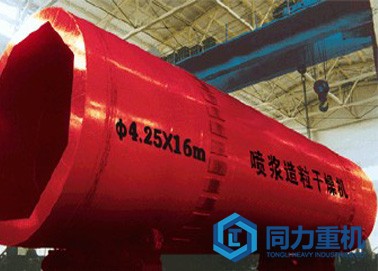 噴漿造粒干燥機工作原理熔融液體在高壓泵的作用下進入特殊設(shè)計的霧化噴頭,被霧化成細小的液滴,并與回轉(zhuǎn)圓筒內(nèi)的細小顆粒晶核相接觸,液滴粘附在晶核表面在高溫干燥介質(zhì)的作用下,迅速完成熱質(zhì)交換過程,顆粒增大,增大后的顆粒被篩分,細小的顆粒返回作為晶核;也有部分成為粉狀物料,也被返回作為晶核.