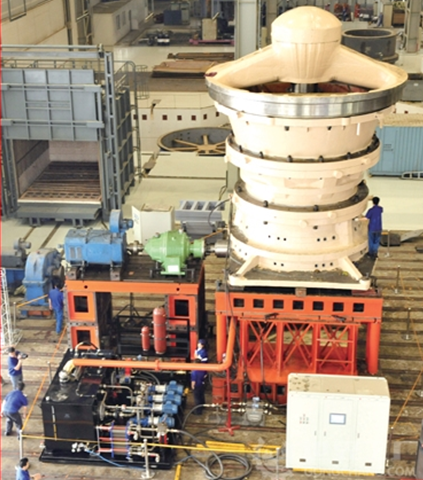 我公司生產(chǎn)的旋回破碎機(jī)均為液壓支承結(jié)構(gòu)。破碎機(jī)啟動(dòng)前,首先打開油泵向缸內(nèi)充油,當(dāng)破碎圓錐上升到工作位置后,關(guān)閉截止閥,同時(shí)停止油泵。這種結(jié)構(gòu)的破碎機(jī)可方便地調(diào)整排礦口尺寸,使用戶獲得滿意的產(chǎn)品粒度和產(chǎn)量。當(dāng)非破碎物落入破碎腔時(shí)造成破碎力增加,系統(tǒng)油壓也隨之增高,油缸內(nèi)的油被壓入蓄能器中,從而使破碎圓錐下降,排礦口增大,排除非破碎物。非破碎物排出后,在蓄能器的作用下,油經(jīng)單向節(jié)流閥比較緩慢地壓入油缸中,從而使破碎圓錐很平穩(wěn)地自動(dòng)復(fù)位。當(dāng)非破碎物尺寸過大不能通過排礦口排出時(shí),系統(tǒng)油壓繼續(xù)升高達(dá)電接點(diǎn)壓力表調(diào)定值時(shí),控制系統(tǒng)可自動(dòng)停止主電機(jī),以保證設(shè)備安全。
