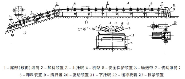 膠帶輸送機(jī)又稱皮帶輸送機(jī),輸送帶根據(jù)摩擦傳動(dòng)原理而運(yùn)動(dòng),適用于輸送堆積密度小于1.67/噸/立方米,易于掏取的粉狀、粒狀、小塊狀的低磨琢性物料及袋裝物料,如煤、碎石、砂、水泥、化肥、糧食等。膠帶輸送機(jī)可在環(huán)境溫度-20℃至+40℃范圍內(nèi)使用,被送物料溫度小于60℃。其機(jī)長及裝配形式可根據(jù)用戶要求確定,傳動(dòng)可用電滾筒,也可用帶驅(qū)動(dòng)架的驅(qū)動(dòng)裝置。